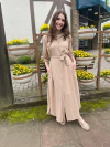 Vestido Chemise Leoni Listrado Risca de Giz Bege